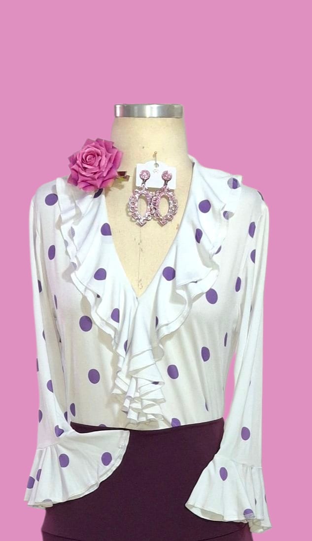 BLUSA BROMÉLIA BRANCA POÁ LILÁS