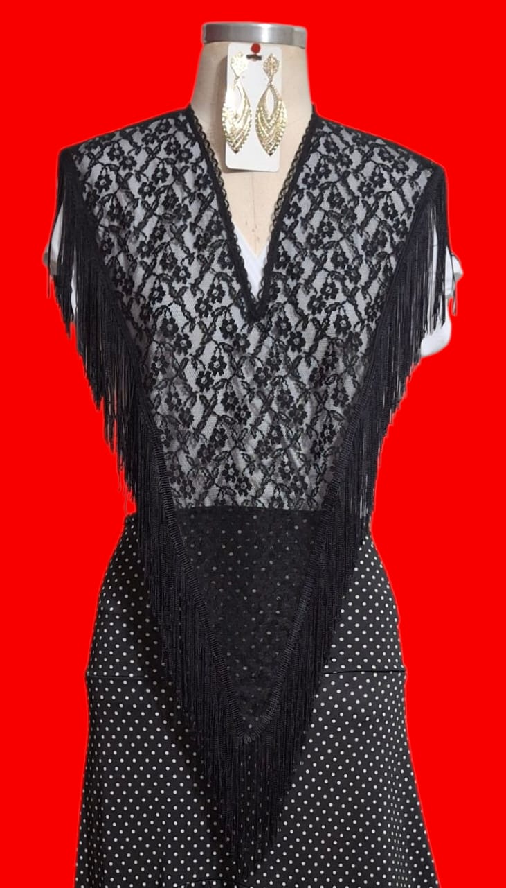 PALA DE RENDA FRENTE E COSTAS COM FRANJA DE 13 CM COM RENDINHA NO DECOTE COMO ACABAMENTO.