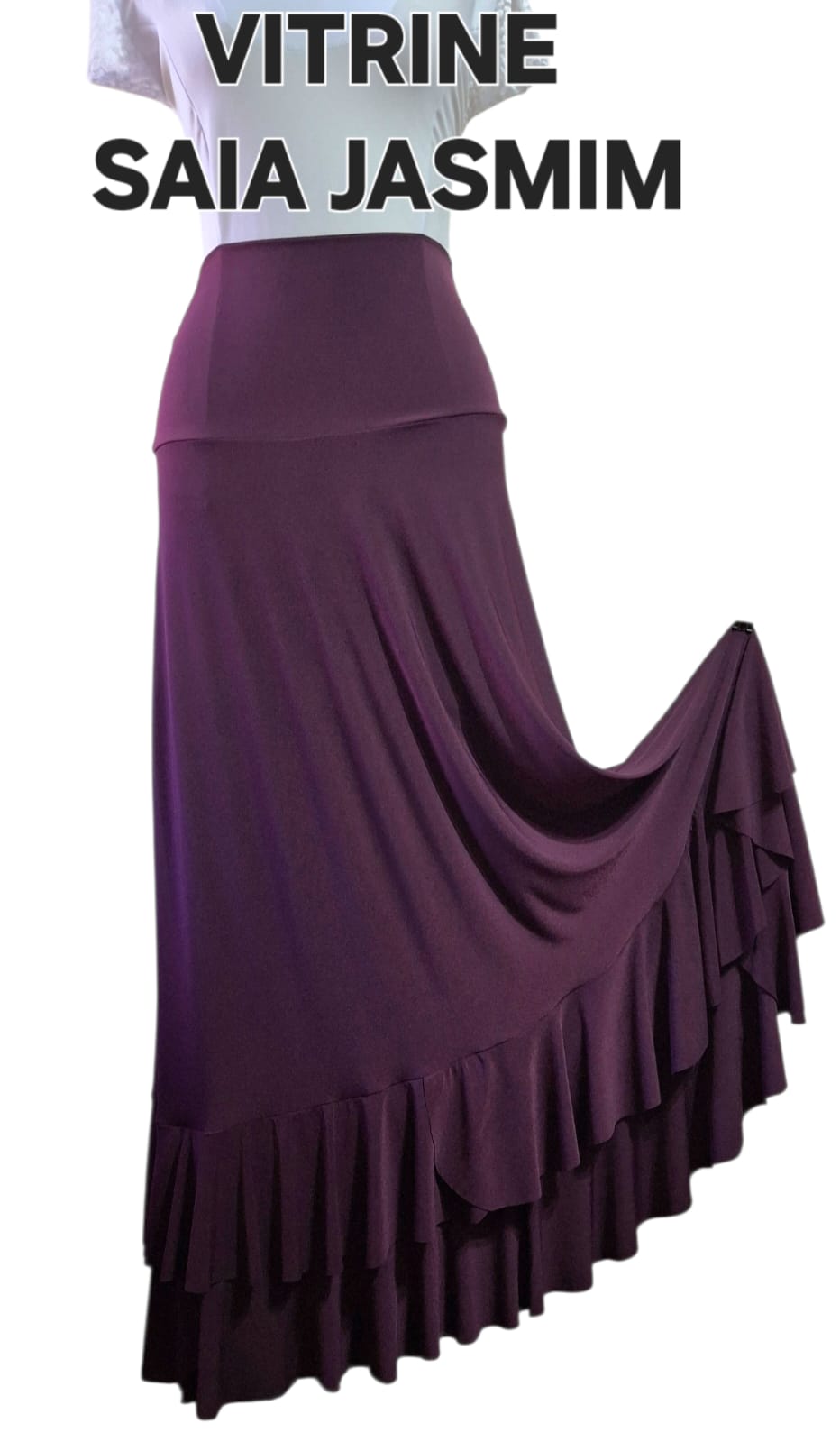 SAIA JASMIM BORDÔ EM MALHA ITY, COM DOIS BABADOS.