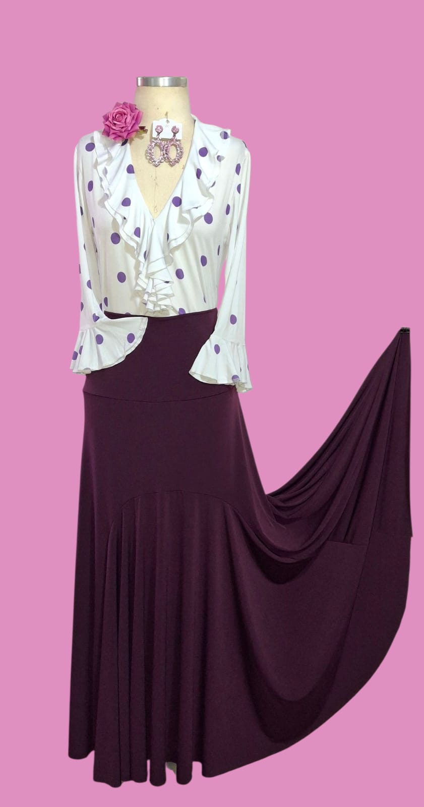 Saia para dança flamenca e para o dia-a-dia. Confeccionada em malha ITY (poliéster e elastano).