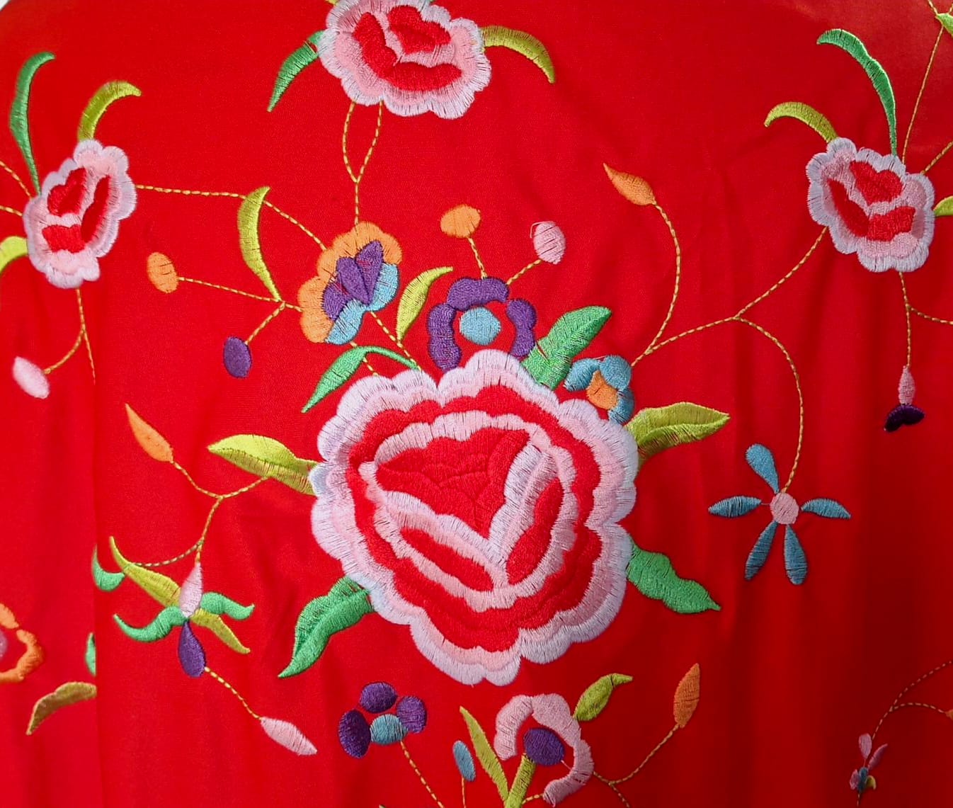 Xale espanhol bordado, poliester,170cm x 85cm, única peça.